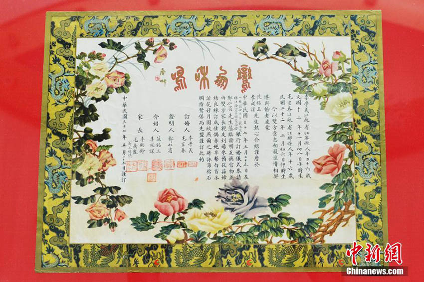 Dez certid?es de casamento que se referem ao período da República da China (1912 - 1949) também foram expostas ao público.