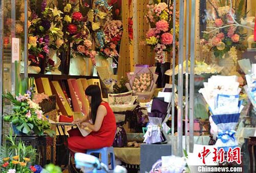 Com a chegada desse dia de amor e felicidades, as lojas em Fuzhou, capital da Província de Fujian, sudeste da China, est?o decoradas para criar um ar de romantismo para os clientes. Muitos jovens têm comprado presentes para seus namorados.