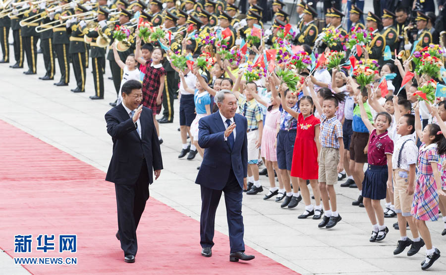Xi Jinping deu as boas vindas a Nursultan Nazarbayev que fez pela primeira vez uma visita oficial à China desde o seu novo mandato e que participará nas atividades de comemora??o do 70o aniversário da vitória da Guerra do Povo Chinês de Resistência à Agress?o Japonesa e da Guerra Antifascista Mundial. Xi Jinping lembrou que a China e o Cazaquist?o s?o parceiros sinceros e estreitos, e que desde o estabelecimento das parcerias estratégicas abrangentes das duas partes, a coopera??o de ambos tem presentado uma boa tendência. Além disso, a confian?a política mútua é cada vez mais sólida.