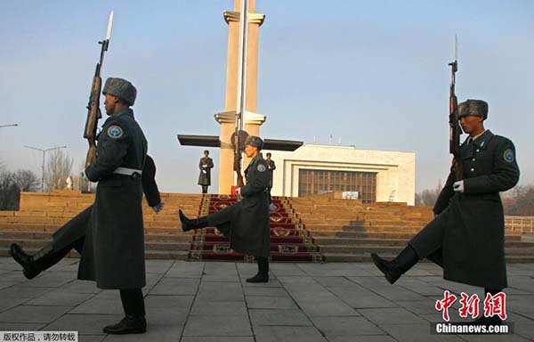 Quirquist?o: 15 de dezembro de 2007 - guarda de honra do Quirquist?o avan?ando em Bisqueque, a capital do país. Os soldados desta guarda s?o também membros da Guarda Nacional.