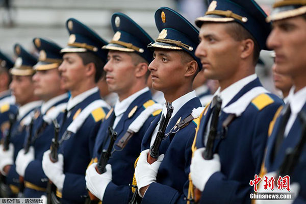 Tajiquist?o: dia 9 de maio de 2011 - membros da guarda de honra do Tajiquist?o numa parada consagrada ao dia da vitória em Duchambe, capital do país. Um total de 75 soldados participará do desfile chinês. Os soldados foram selecionados num grupo de 150 membros da guarda de honra do país e treinam mais de oito horas por dia. De acordo com um oficial da equipe, a sua participa??o no desfile da próxima quinta-feira (3), em Pequim, é uma grande honra por se tratar de uma oportunidade em que os soldados tadjiques v?o mostrar o seu charme ao mundo.
