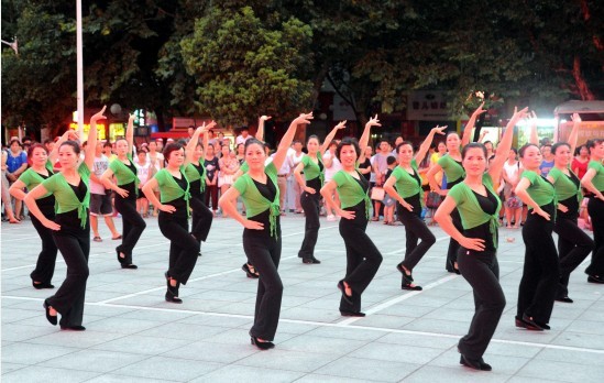 As “dan?as de pra?a” s?o muito populares entre o público sénior pois requer poucos recursos para ser realizada. Basta uma coluna e amigos. Por vezes quem passa junta-se espontaneamente ao grupo. Grupos de idosas a dan?ar podem ser vistas um pouco por toda a China ao final da tarde.