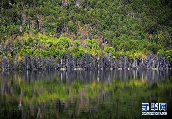 Foto tirada no dia 13 de setembro de 2015 mostra o cenário de outono do Lago Wusulangzi em Arxan, no norte da Regi?o Aut?noma da Mongólia Interior.
