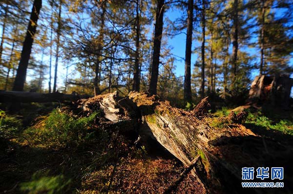 Foto tirada no dia 13 de setembro de 2015 mostra o cenário de outono do parque nacional da floresta de Arxan, no norte da Regi?o Aut?noma da Mongólia Interior.