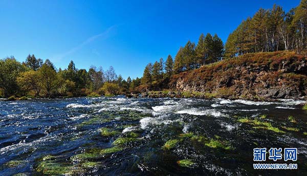 Foto tirada no dia 13 de setembro de 2015 mostra o cenário de outono do Desfiladeiro Santan em Arxan, no norte da Regi?o Aut?noma da Mongólia Interior.