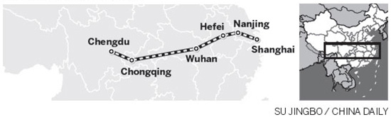 O linha ferroviária teria inicio em Xangai e percorreria Nanquim, Hefei, Wuhan, Chongqing e terminaria em Chengdu, na província de Sichuan, atingindo velocidades de 350km’s por hora e interligando 22 cidades ao longo do maior rio da China.