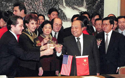 No dia 11 de setembro de 2001, a China tornou-se membro da OMC. No dia 27 do mesmo mês, Washington anunciou a atribui??o do status quo de “na??o mais favorecida” à China.