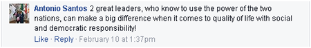 Antonio Santos (Brasil): Obama e Xi s?o dois grandes líderes. Eles sabem como usar a for?a do país para um milagre, além de melhorar a vida do povo e assumir as responsabilidades em rela??o a democracia.