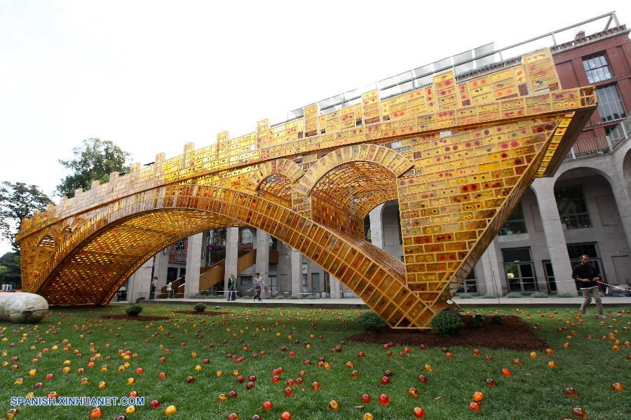 MIL?O, 29 de setembro (Diário do Povo Online) – Uma estrutura gigante em forma de ponte dourada, criada por um artista chinês moderno, foi apresentada na última segunda-feira (28) na Expo de Mil?o.