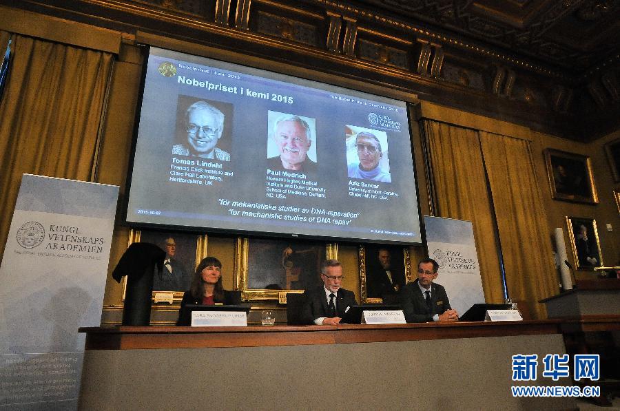 A Academia Real de Ciências da Suécia declarou no dia 7 que o Nobel de Química deste ano vai para o cientista suceco, TomasLindahl, o americano, Paul Modrich, e o turco americano, Aziz Sancar, por suas contribui??es na repara??o do DNA.