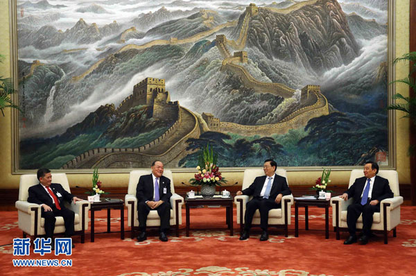 O presidente do Comitê Permanente da Assembleia Popular Nacional da China, Zhang Dejiang, recebeu no dia 13 em Pequim a delega??o chefiada pelo presidente da Assembleia Legislativa da Regi?o Administrativa Especial de Macau (RAEM), Ho Iat Seng.