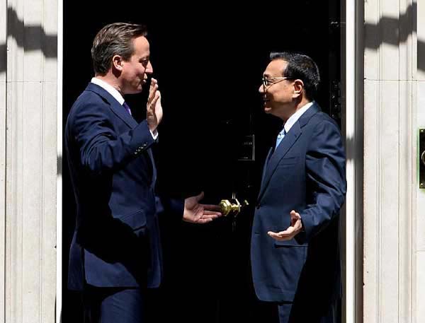 Primeiro-ministro Li Keqiang reune-se com o seu homólogo britanico, David Cameron, a 17 de junho de 2014
