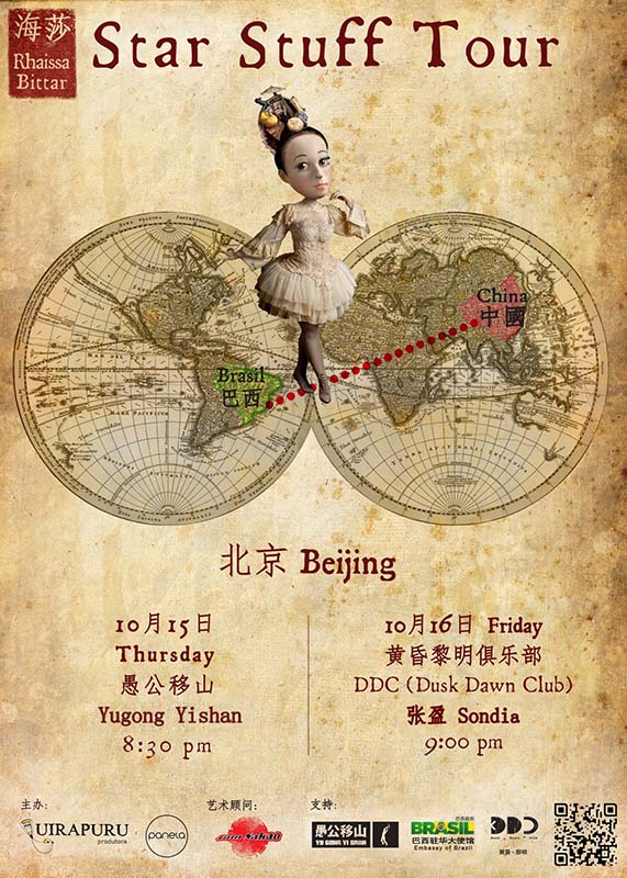 A artista abriu sua turnê “Matéria Estelar” na tarde de ontem com um pocket show na embaixada do Brasil em Pequim. A qualidade das suas músicas e da sua voz agradaram aos ouvidos da comunidade brasileira presente e do novo embaixador do Brasil na China, Roberto Jaguaribe Gomes de Mattos, que em seu primeiro evento público desde que chegou ao país no último sábado, lembrou que o Brasil é um país musical.