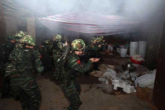A polícia de Guangxi informou que uma equipe de 30 soldados participaram do cerco a uma fábrica abandonada no distrito de Bobai.