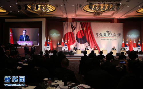 O premiê chinês, Li Keqiang, participou na tarde de ontem (1), em Seul, da 5a Cúpula Comercial e Industrial entre China, Jap?o e Coreia do Sul. O evento também contou com a presen?a da presidente sul-coreana, Park Geun-hye, e o primeiro-ministro japonês, Shinzo Abe.