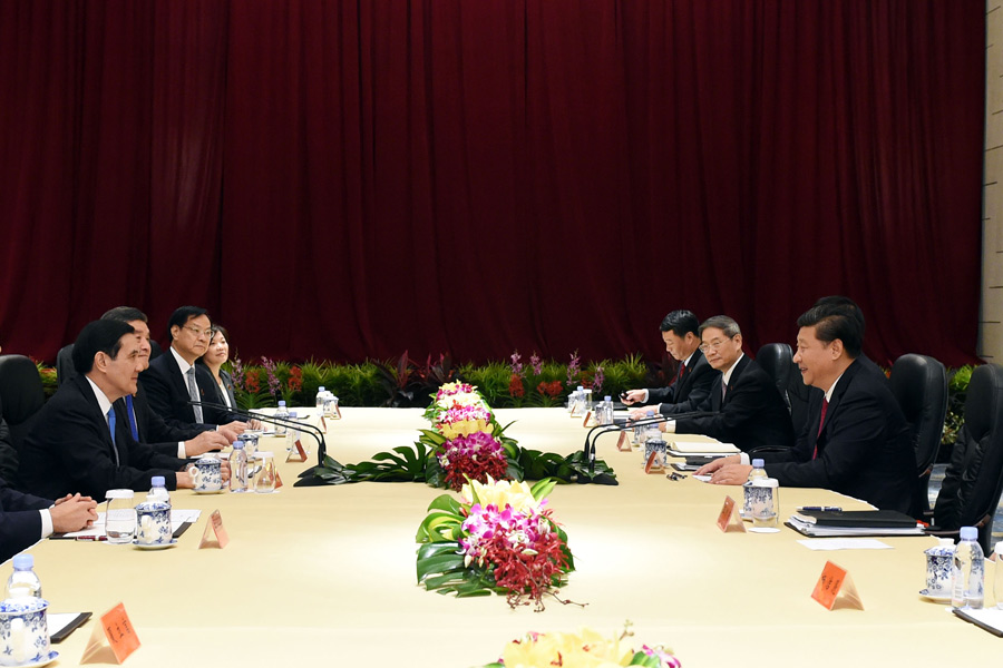 Na reuni?o histórica realizada em seguída ao aperto de m?os, Xi reiterou a posi??o que há muito tempo a parte continental tem mantido em rela??o às rela??es entre os dois lados do Estreito.