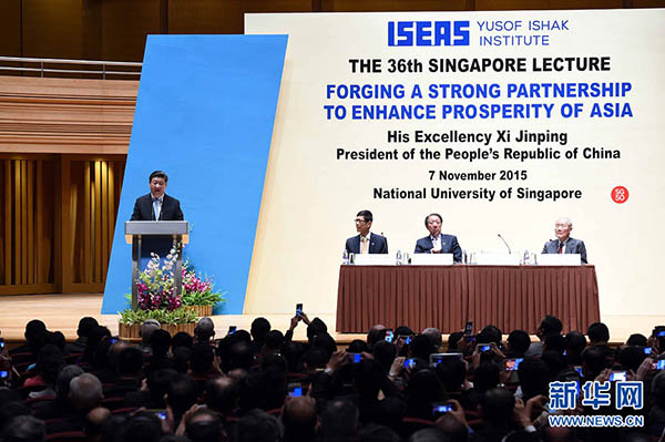 “A filosofia de um desenvolvimento pacífico está nos genes na cultura chinesa”, disse Xi num discurso perante 450 professores, estudantes e oficiais na Universidade Nacional de Singapura.