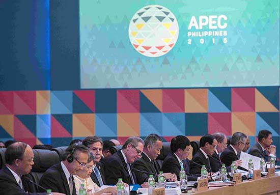 MANILA, 18 de novembro (Diário do Povo Online) – A 27a reuni?o ministerial de Coopera??o Económica ásia-Pacífico (APEC) foi encerrada ontem (17) na capital filipina. Durante a reuni?o de dois dias, os 21 ministros da APEC discutiram como ampliar a influência da regi?o da ásia-Pacífico sob o tema "criar uma economia inclusiva e construir um mundo melhor". Uma declara??o conjunta foi publicada depois da reuni?o.