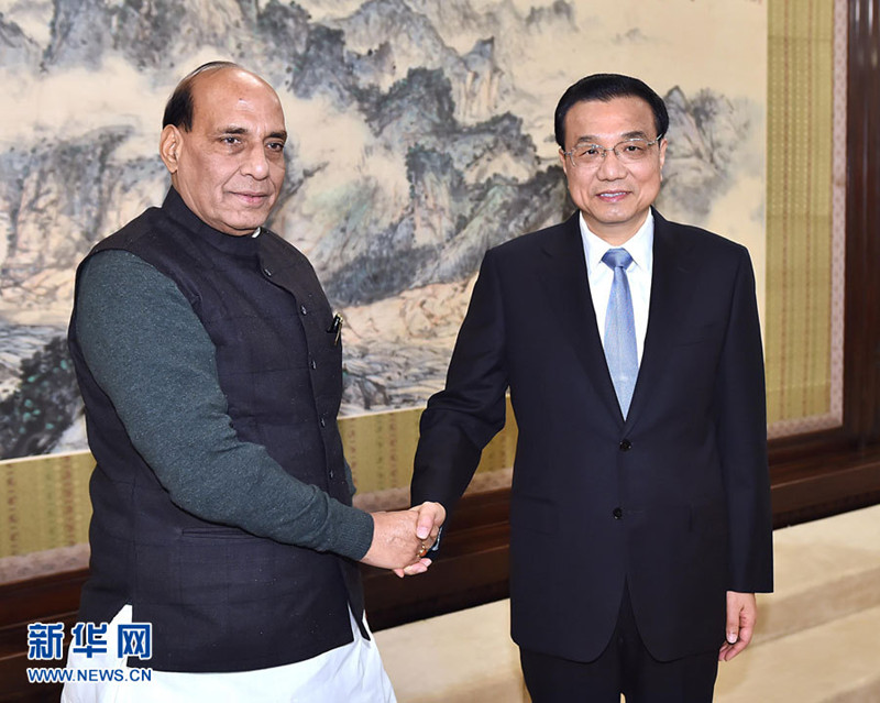 O primeiro-ministro chinês, Li Keqiang, recebeu ontem (19) o ministro dos Assuntos Internos da índia, Rajnath Singh.