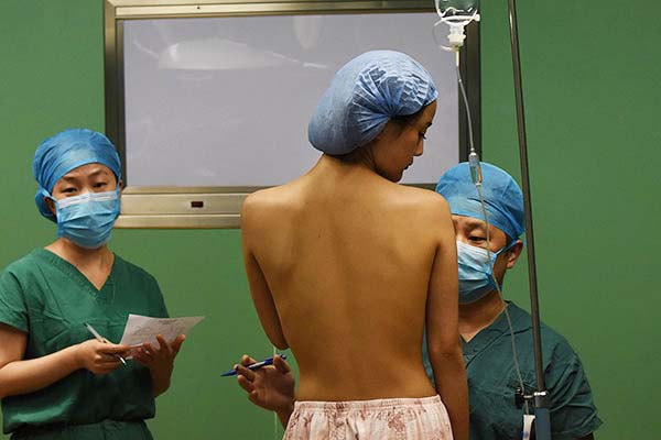 Paciente se prepara para colocar prótese de silicone num hospital de Hefei, Província de Anhui. [Foto/China Daily]