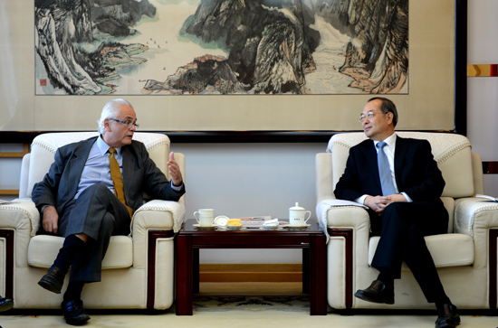 PEQUIM, 26 de novembro (Diário do Povo Online) - O presidente do Diário do Povo, Yang Zhenwu, recebeu nesta quinta-feira (26), na sede do jornal, o novo embaixador do Brasil na China, Roberto Jaguaribe.