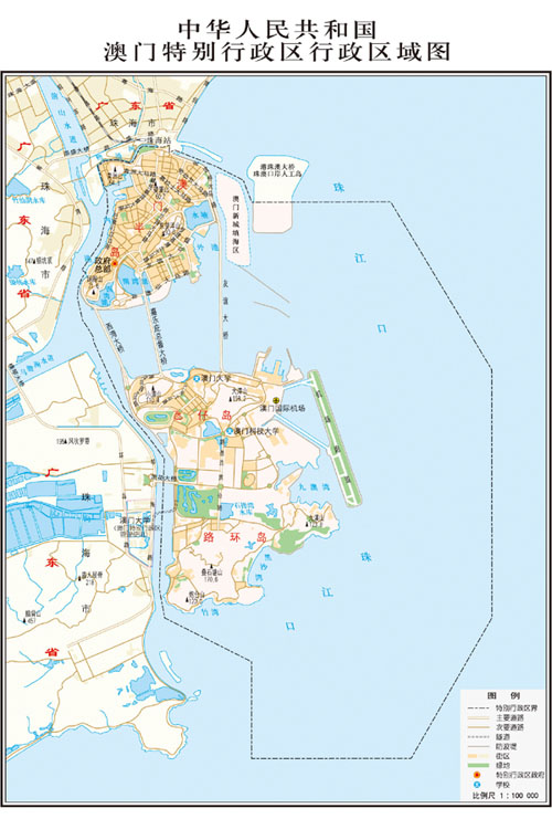 De acordo com o mapa, uma área marítima de 85 quil?metros quadrados ao leste e sul de Macau deve ser administrada pela RAE. Uma faixa de terra para constru??o de inspe??o fronteiri?a entre Macau e a cidade de Zhuhai, na vizinha Província de Guangdong, também foi designada sob a administra??o da RAE Macau.