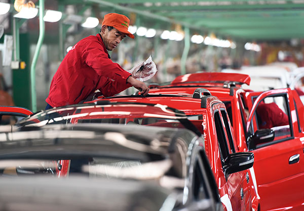 Um operário trabalha na montagem de um veículo de energia limpa na cidade Binzhou, em Shandong.