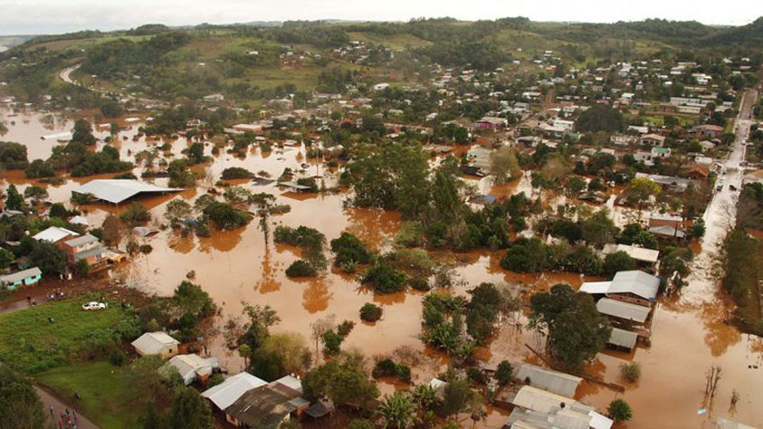 O Rio Uruguai também afetou o sul do Brasil. Mais de 9 mil pessoas fugiram de 38 cidades afetadas. Na manh? do dia 26, a presidente Dilma Rousseff visitou a área afetada por avi?o e decidiu destinar 1,8 milh?es de dólares para os trabalhos de resgate.