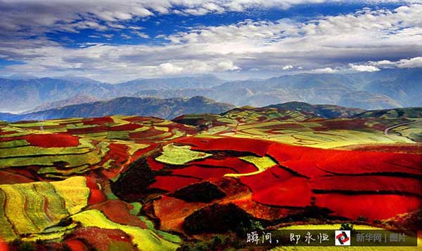 7 - Dongchuan, uma regi?o rural no nordeste de Kunming, na Província de Yunan, tem uma vasta área de terra vermelha que é considerada a segunda mais imponente do mundo, seguida do Rio de Janeiro, no Brasil.