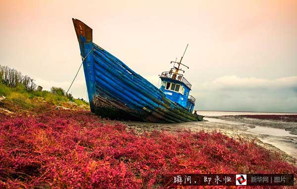 1 - Localizada na cidade de Panjin, na Província de Liaoning, no nordeste da China, a regi?o turística da Praia Vermelha é famosa pela sua paisagem única, derivada de um tipo da planta que cresce na salina. A planta toma tons vermelhos no outono, mas tem tonalidades mais suaves em abril. A Praia Vermelha aloja 260 tipos de pássaros e 399 tipos de animais selvagens.