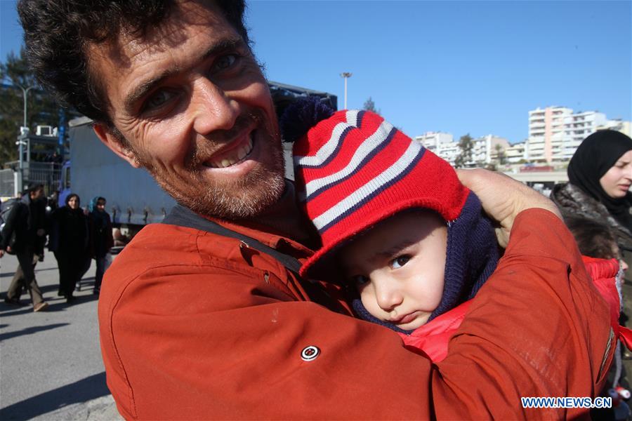 Refugiados e migrantes a bordo da balsa de passageiros Blue Star Patmos chegam ao porto de Piraeus, próximo de Atenas, na Grécia, a um de fevereiro de 2016. Quase 6,000 refugiados que se registaram nas ilhas de Lesbos e Chios atracaram no Porto de Piraeus. Centenas continuam a fazer a travessia da Turquia para as ilhas gregas apesar das condi??es climatéricas agrestes.