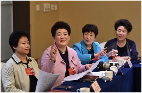 A 7 de mar?o, a delega??o de Liaoning examinou o relatório de trabalho do governo. A atmosfera na sala de reuni?es era de entusiasmo, e todos os deputados se apressavam para falar. A deputada Li Yuhuan (segunda à esquerda) apresentou várias sugest?es sobre a melhoria do sistema de seguran?a social da China. (Foto: Li Ke/Diário do Povo)