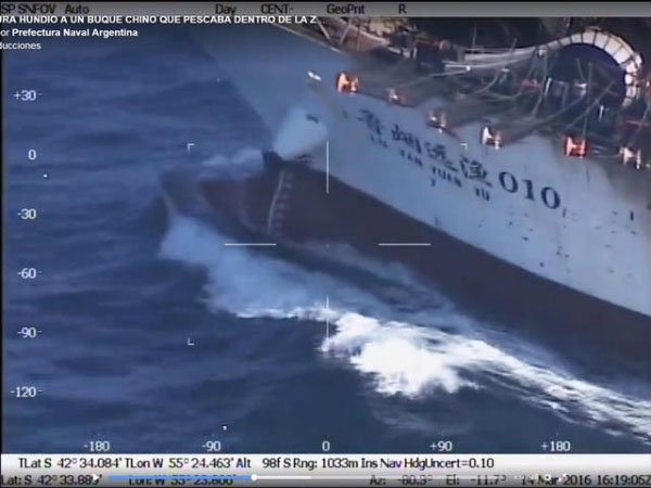 De acordo com a guarda costeira, enquanto o pesqueiro fugia para águas internacionais, tentou se chocar contra o barco da patrulha, colocando ambas as partes em perigo. O barco argentino entrou em contatou com o pesqueiro chinês via rádio e disparou tiros de advertência para o céu, mas o pesqueiro n?o respondeu. Finalmente, a patrulha destruiu o pesqueiro.