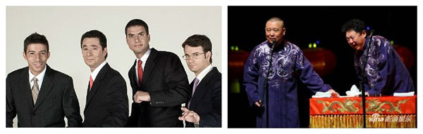 Duas tradi??es humorísticas distintas: Grupo “Gato Fedorento” e dois famosos comediantes de “Xiangsheng” (espectáculo de comédia chinesa comparável à comédia stand-up no ocidente).(Foto:Marketeer)