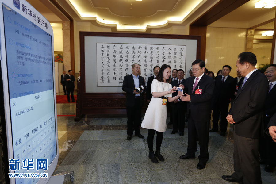 Ele foi para o centro da mídia criado pela Agência de Notícias Xinhua no Grande Palácio do Povo e apertou as m?os de funcionários da Xinhua e observou a cobertura que fizeram do evento usando plataformas tradicionais e de nova mídia.
