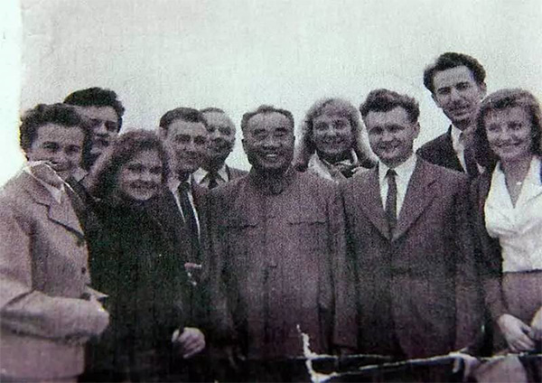 Salal (2o à direita) com os seus colegas naquela que era na altura a embaixada checoslovaca na China com Zhu De.