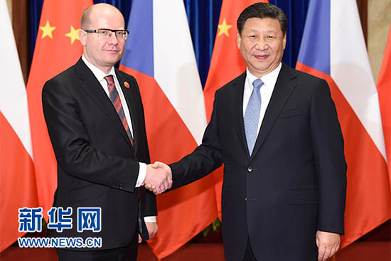 O presidente chinês Xi Jinping encontra-se com o primeiro-ministro tcheco,Bohuslav Sobotka (Arquivo)