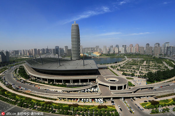 O céu azul paira sobre a Nova área de Zhengdong, o distrito de negócios da capital da província de Henan.