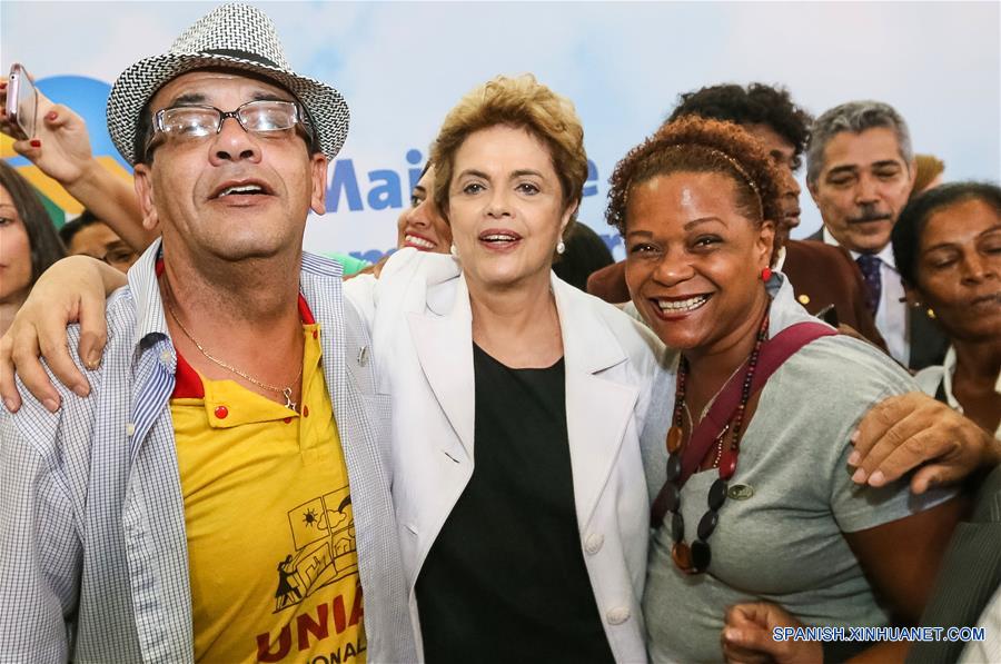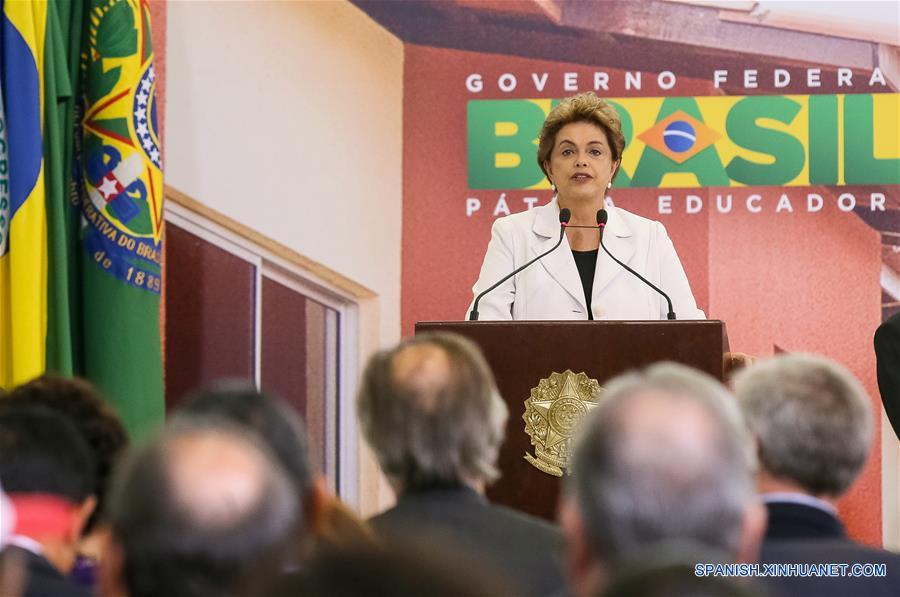 A presidente de Brasil, Dilma Rousseff inaugura nova fase do programa Minha Casa, Minha Vida, em Brasília, Brasil, em 30 de mar?o de 2016. (Xinhua/ Presidência do Brasil)