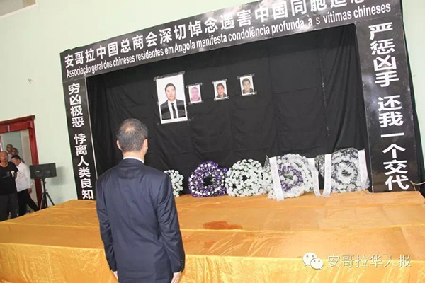 LUANDA, 5 de abril (Diário do Povo Online) –Mais de mil expatriados chineses realizaram na segunda-feira uma cerim?nia em memória a morte de quatro cidad?os chineses assassinados no início do ano no sul de Luanda depois de um desentendimento com cidad?os locais envolvendo terras locais.