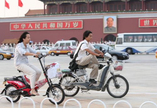 Há cerca de quatro milh?es de veículos elétricos de duas rodas em Beijing. Muitos delas s?o mais parecidas com motos do que bicicletas elétricas.