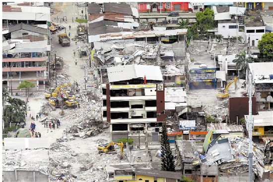 O terremoto ocorrido no sábado, o mais forte no Equador em 35 anos, deixou mais de 500 mortos e quase 6 mil feridos.