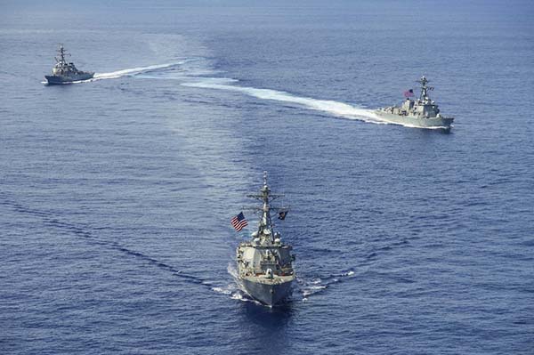 Segundo a nota divulgada pelo ministério da Defesa na tarde do mesmo dia, dois ca?as J-11 e um avi?o patrulha Y-8 da marinha chinesa sobrevoaram as águas em quest?o. Um contratorpedeiro, uma fragata porta-míssil e uma fragata de patrulha identificaram o navio de guerra dos EUA, emitiram o alerta e conduziram o mesmo para fora das águas chinesas.