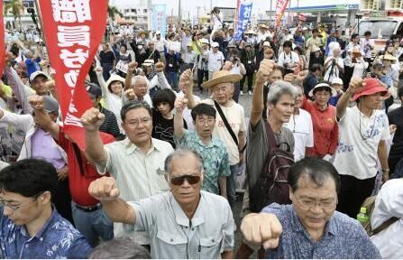 O protesto apresentou um comunicado que apelava à redu??o do tamanho das bases americanas, à revis?o do acordo de coopera??o militar entre os EUA e o Jap?o (SOFA, na sigla em inglês), e ao abandono do plano da reloca??o de uma base americana para Henoko.