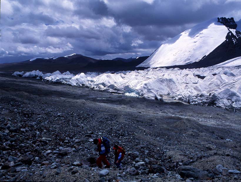 A geleira Jianggudiru, na montanha Geladaindong, encolheu 34 metros nos últimos seis anos, disse Pu Jianchen, pesquisador do Instituto de Pesquisa Ambiental e de Engenharia de Regi?es Frias e áridas, subordinado à Academia Chinesa das Ciências.