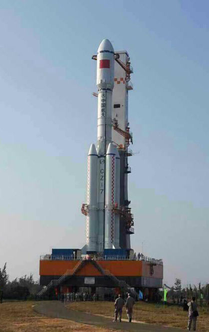O Long March 7, um foguete de dimens?es médias que usa um propulsor líquido, tem a capacidade de carregar até 13,5 toneladas para a órbita terrestre baixa.