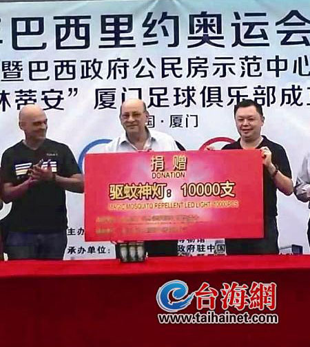 Recentemente, a fabricante chinesa de lampadas, FireflyLighting, com sede em Xiamen, no sudoeste do país, doou um lote de lampadas repelentes ao c?nsul-geral do Brasil em Guangzhou, José Vicente da Silva Lessa.