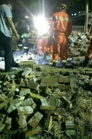 Por volta das 16h30, uma se??o de um muro com 60 metros desmoronou por causa de fortes ventos, de acordo com um funcionário do governo do distrito de Gaocheng.
