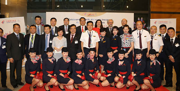A primeira aeronave a fazer a viagem chegou em Madrid partindo de Shanghai na noite de ter?a-feira antes de decolar no voo de retorno.