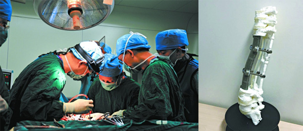 BEIJING, 5 de jul (Diário do Povo Online) – O Sr. Yuan sofria de um tumor maligno na coluna vertebral, que havia corroído já 5 sec??es desta. Do ponto de vista médico, a única possibilidade de cura é a remo??o do tumor através de cirurgia. No entanto, a remo??o do tumor também significaria a perda de parte da sua coluna vertebral.